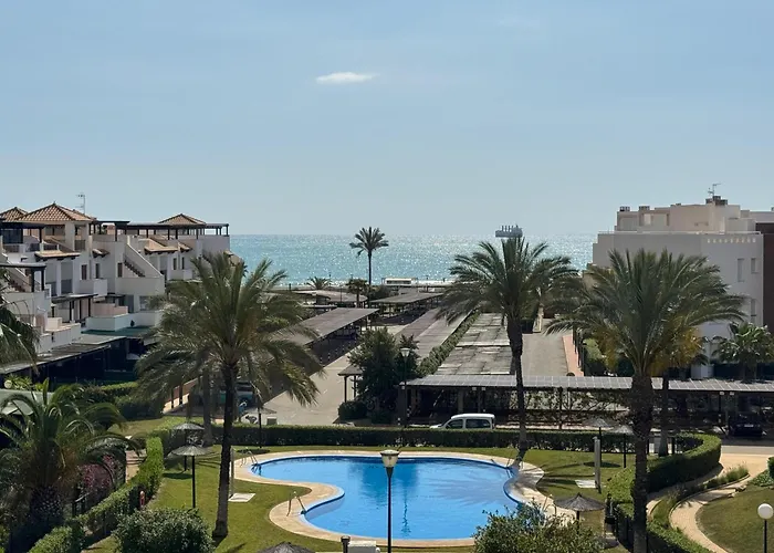 1-slaapkamer Atico Nuevo Vera Solarium Urbanizacion A Pie De Playa bevindt zich binnen 14 minuten wandelen van Parque Acuático Aquavera en biedt een terras met een zwembad. De Almeria luchthaven ligt op 90 km afstand en de bushalte Rotonda Consum / AquaVera ligt op 150 meter van het strand appartement.